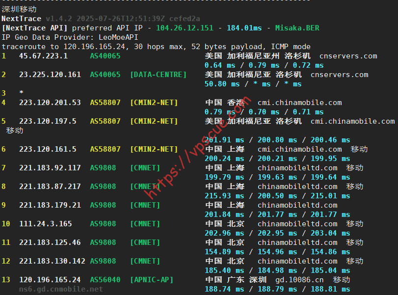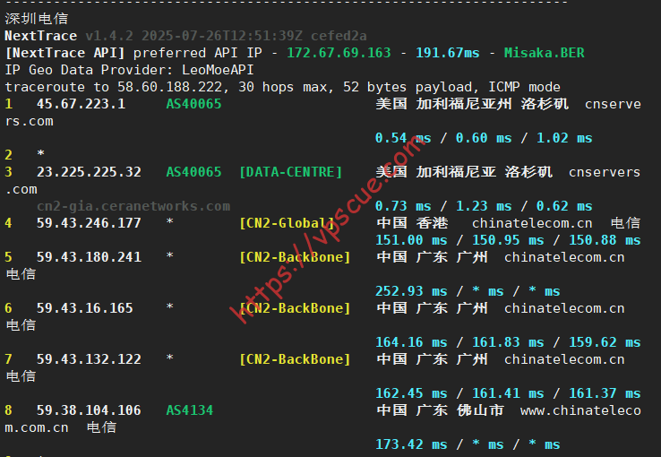 深圳电信走的广州CN2 GIA