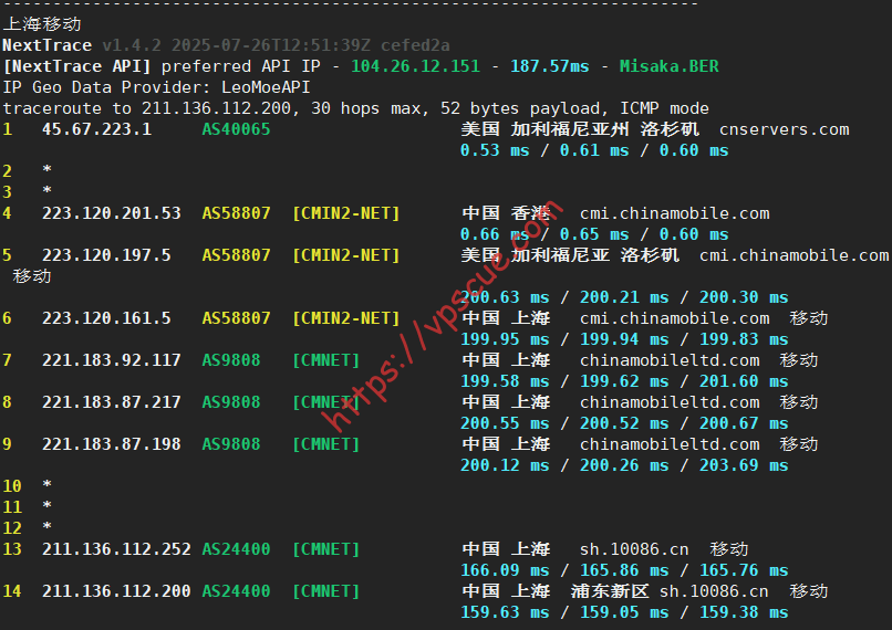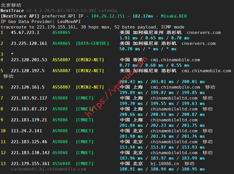 北京移动CMIN2走的上海入口